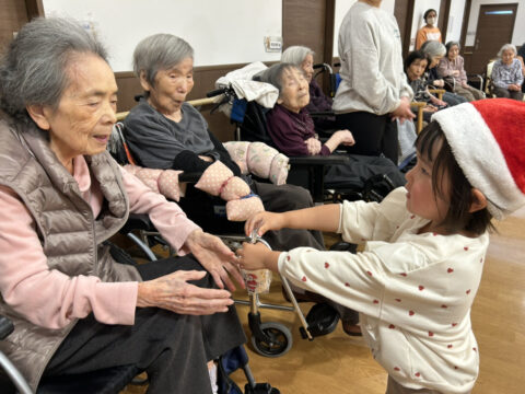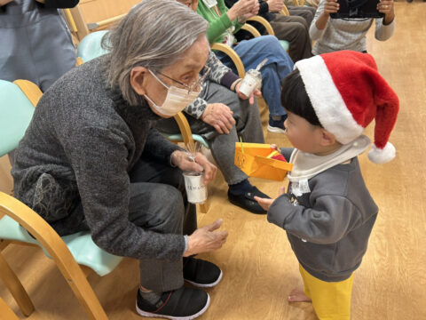 そして今年も、子どもサンタがグループホームと小多機の利用者さんへクリスマスプレゼントをお届けしました。さらに今年は、利用者さんと一緒に「ジングルベル」の合奏も楽しみました♪