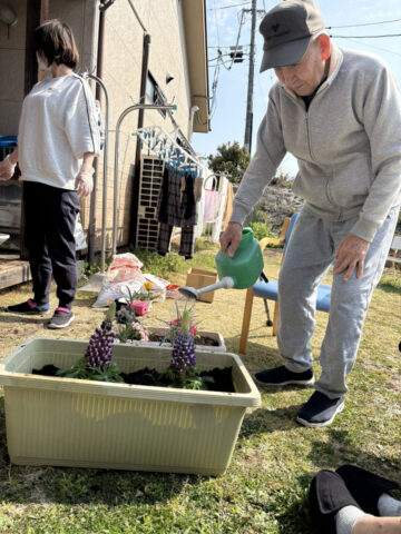 みんなで庭に出てお花を植えました